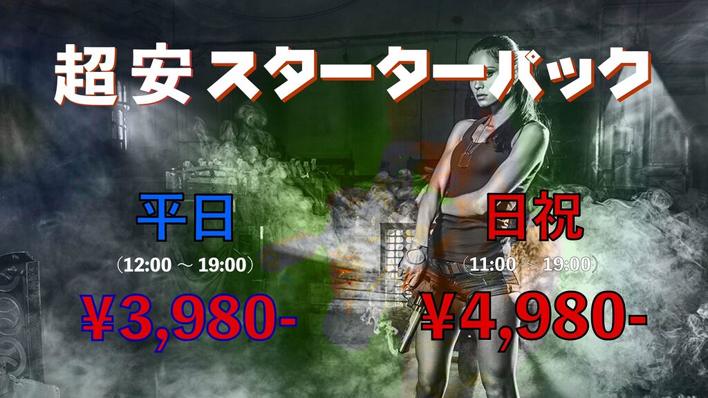 ✅ ゴーグル(フルフェイス)(300円) ✅ レンタルガン(1,300円分) ※扱いやすい電動ハンドガンをご用意しています ✅ 軍手(手の保護に)(100円) ✅ BB弾400発(初心者には十分な量!)(200円) ✅ ゲーム料金 平日ヌーンデイ(12:00~19:00) 2900円 日祝ヌーンデイ(11:00~19:00)3800円