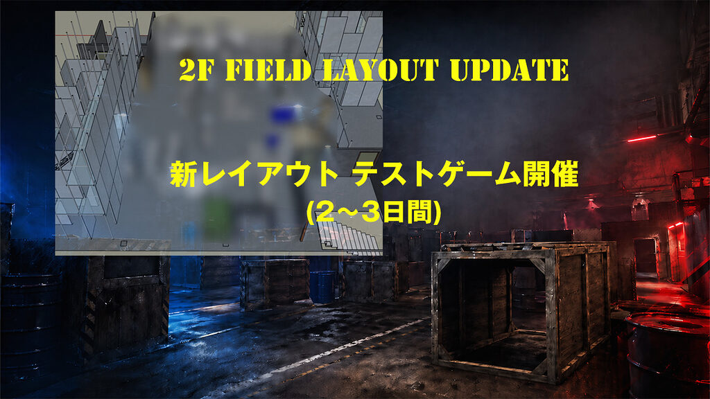 BBGUN 2階フィールドでは、より楽しく、より撃ち合いを楽しめるフィールドを目指し、レイアウト変更のテストゲームを実施いたします。 今回のテストでは、実際にお客様にゲームをプレイしていただきながら、動きやすさ・撃ち合いのしやすさ・隠れ場所や進行ルートのバランス