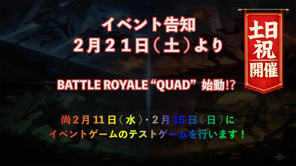 唯一無二のバトルロワイアル”QUAD” 退屈な日常に、強烈な一撃を。 予定調和なバトルに飽き飽きしている君へ送る、 至高にして最凶のエンターテイメント。 四方八方、すべてが脅威。 一瞬の判断ミスが、即座に命取 […]